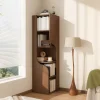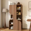 A modern tall display cabinet featuring curved open shelves for a sculptural and functional storage solution.
